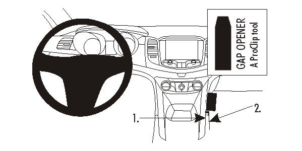 Mielőtt a ProClip-et rögzítené, kérjük, figyelmesen olvassa el a használati útmutatót! 1. Nyomja a mellékelt réstágító vékonyabbik végét a résbe, a konzol alumínium része és a konzol oldalfala közé, hogy tágítsa a rést. Tisztítsa meg azt a felületet, ahová kerülni fog a ProClip a mellékelt alkoholos párnával. Távolítsa el a ragasztócsík borítását a ProClip-ről. Nyomja a ProClip felső részét a résbe, a réstágító mellé és távolítsa el a réstágítót. 2. A ProClip alsó részét húzza hátra, az utas ülése felé, hogy az alsó éle a műanyag rész éle köré tudjon fonódni. 3. Óvatosan csúsztassa előre a ProClip alsó részét, amíg a műanyag rész szorosan nem fogja. 4. A ProClip a helyére került. |