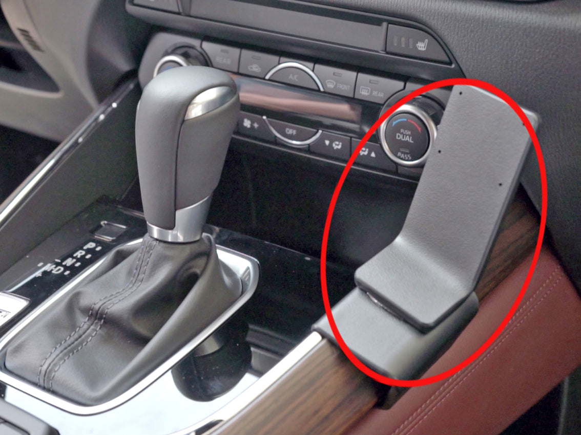 Mielőtt a ProClipet rögzítené, kérjük, tekintse meg a képeket és figyelmesen olvassa el a használati útmutatót! 1. A mellékelt alkoholos párnával tisztítsa meg azt a felületet, ahová kerülni fog a ProClip. Nyomja a mellékelt réstágító vékonyabbik végét a felső és alsó középkonzol oldal panelek közötti résbe. 2. Távolítsa el a ragasztócsík borítását a ProClipről. Nyomja a ProClip jobb élét a résbe, a réstágító mellé. Húzza ki a réstágítót. 3. Hajlítsa a ProClip bal oldalát balra/felfelé és akassza az élét a képen látható helyre. 4. A ProClip a helyére került. |