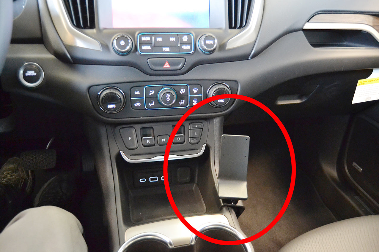 2. Press down on the right side of the ProClip so the lower right edge of the ProClip hooks under the center console side wall.