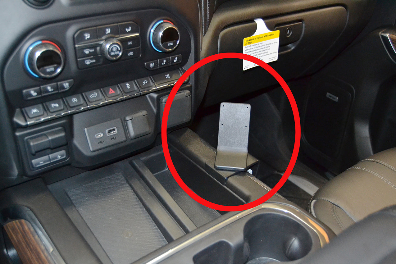 1. Use the enclosed alcohol pad to clean the area where the ProClip is to be installed. Peel off the adheisve tape cover on the ProClip. Hook the left edge of the ProClip over the center floor console edge.