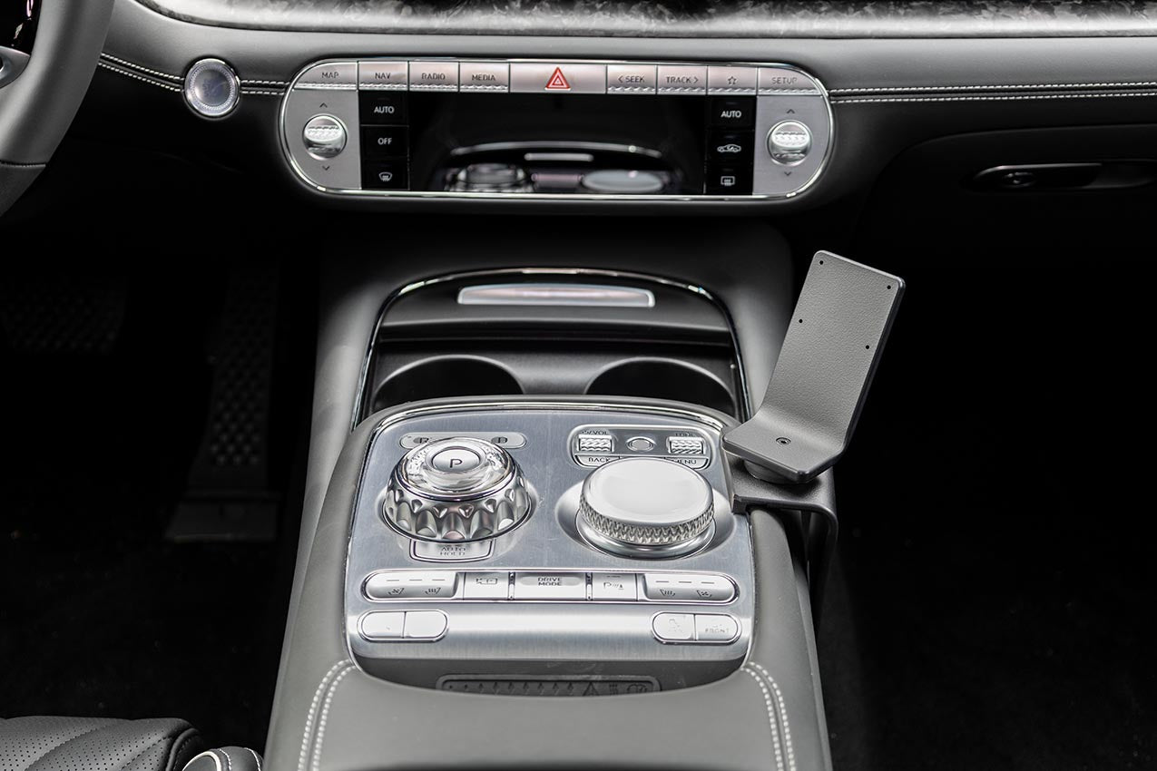 1. Használja a mellékelt alkoholos törlőkendőt a terület megtisztításához, ahová a tartót felszerelik. Távolítsa el a ragasztószalag borítását. Igazítsa a tartó hátsó élét a választókapcsoló gomb közepéhez. Helyezze a tartó felső élét a konzol széléhez.
