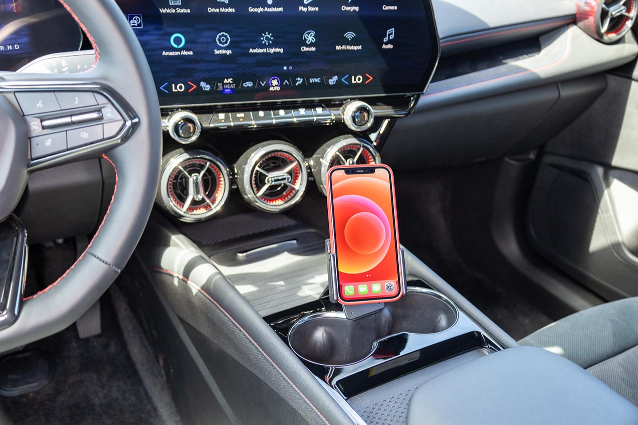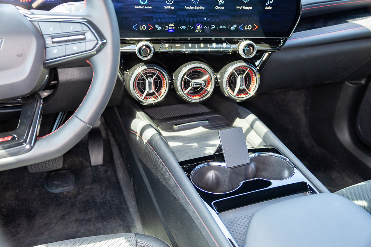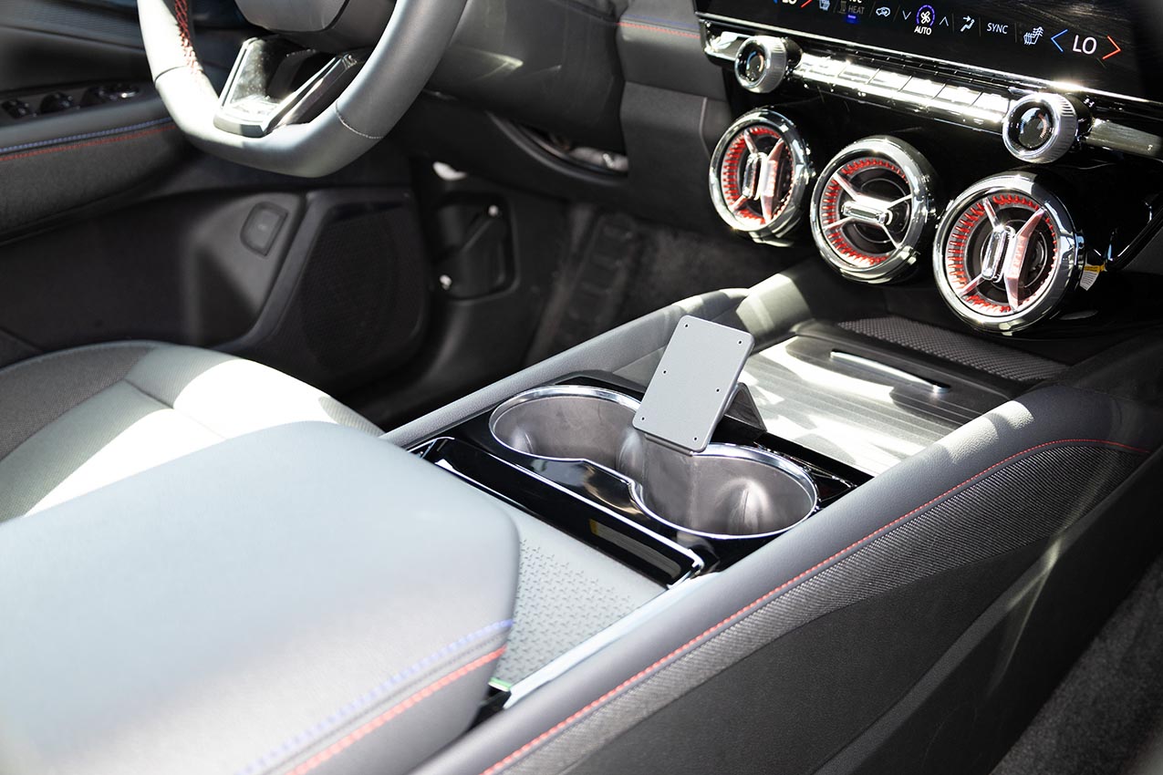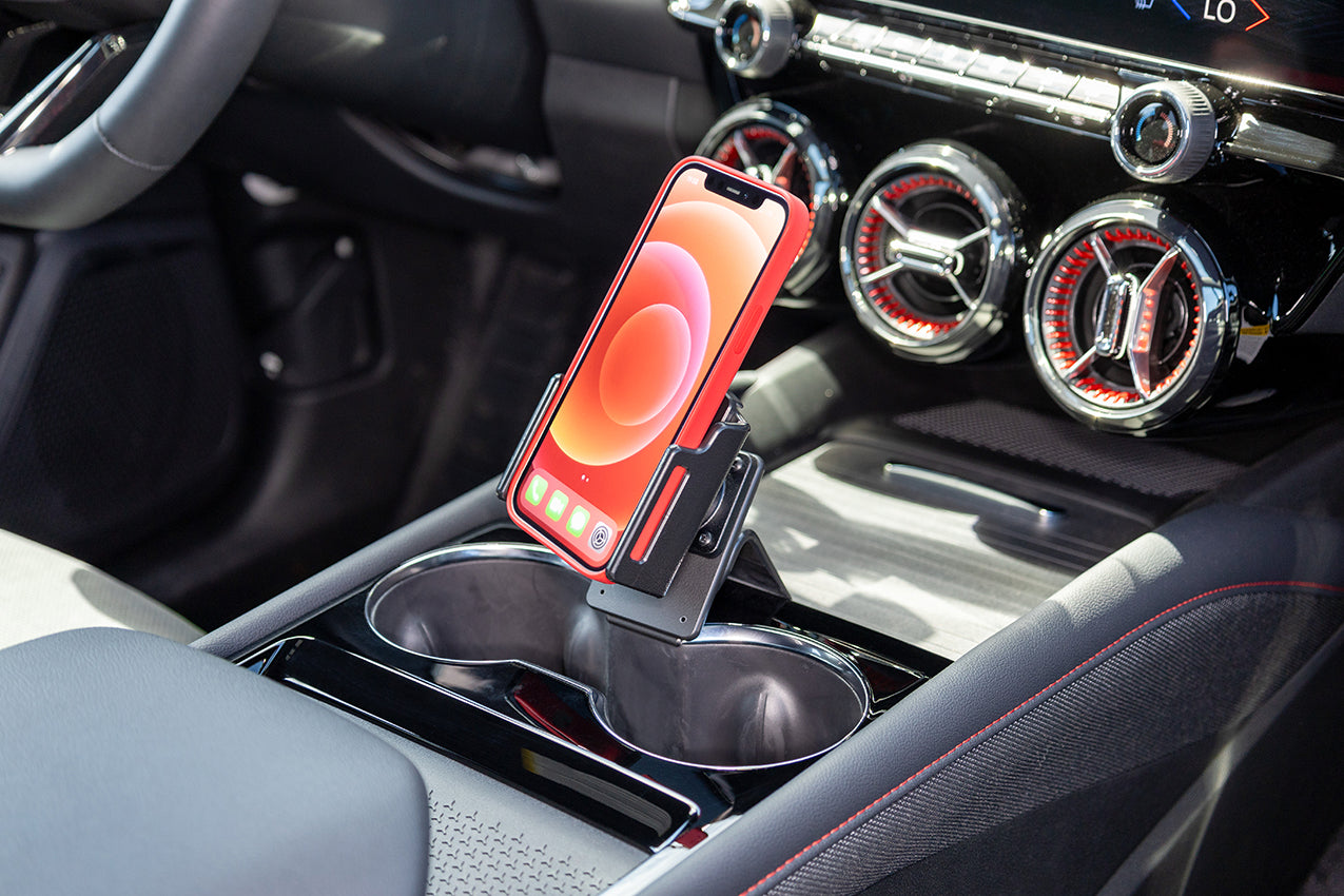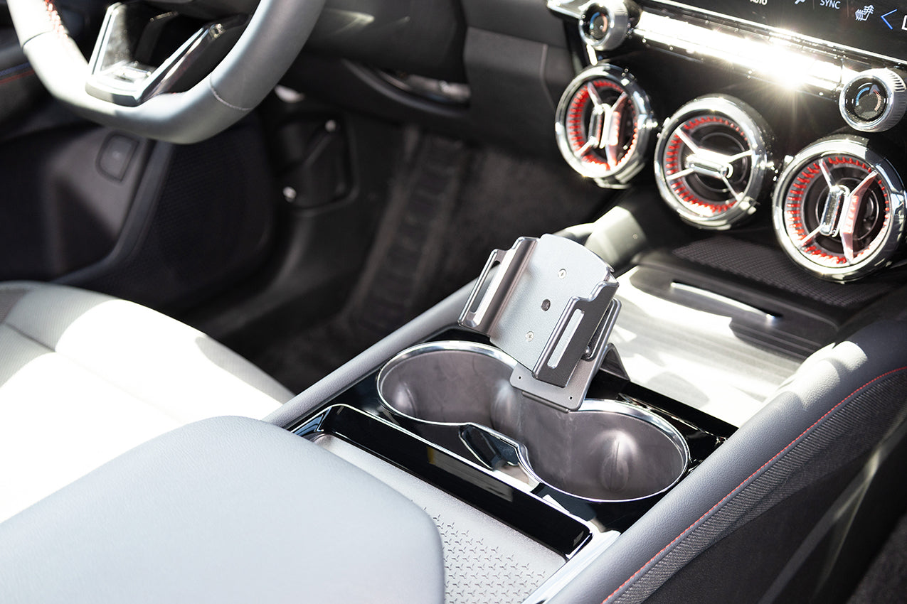 2. Helyezze a tartót középre a pohártartó között. Nyomja a tartó rövid élét a hézagnyitó melletti résbe.