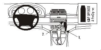 Figyelem! Mielőtt a ProClip-et rögzítené, kérjük, figyelmesen olvassa el a használati útmutatót! 1. Nyomja a ProClip alsó részét a középső konzol és a műszerfal közti résbe! 2. Nyomja a mellékelt réstágítót a rádió-berendezés/navigációs felszerelés és a műszerfal közti résbe! 3. Nyomja a ProClip felső részét a réstágító melletti résbe! Húzza ki a réstágítót! 4. A ProClip a helyére került. |