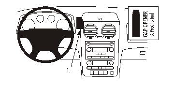 Kérjük, olvassa el az összes utasítást és tanulmányozza a képeket, mielőtt a tartót rögzítené! Ez a ProClip két részből áll. 1. rész: a rögzítő darab (a kisebbik rész) 2. rész: a ProClip előlap 1. A mellékelt réstágító keskeny végének segítségével tágítsa ki a rést a középső konzol-panel kerete és a konzol szegélye között! Nyissa ki a rekesz ajtaját a műszerfal tetején! Távolítsa el a ragasztócsík borítását a rögzítő darabról! 2. Helyezze a rögzítő darab szögletes peremét a réshez a rekesz kerete és a műszerfal párnázott része között! Nyomja a szögletes peremet erősen a résbe, ugyanakkor hajlítsa a rögzítő darabot balra úgy, hogy a szögletes perem beakadjon a rekesz kerete alá, és a ragasztócsík odatapadjon a műszerfal párnázott részéhez! 3. Nyomja erősen a csavarhúzót (Philips) az előre kifúrt lyukakon keresztül az előlapon, hogy felnyíljanak! Távolítsa el a ragasztócsík borítását az előlapról! Helyezze az előlapot a rögzítő darabra úgy, hogy a lyukak illeszkedjenek! Aztán nyomja az előlap hátuljának függőleges részét a résbe a réstágító fölött! Csavarozza az előlapot a rögzítő darabra a mellékelt csavarokkal! Csukja be a rekeszt! 4. A ProClip a helyére került. |