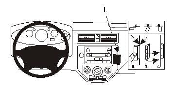 Kérjük, olvassa el az összes utasítást és tanulmányozza a képeket, mielőtt a tartót rögzítené! Ez a ProClip két részből áll. 1. rész: a rögzítő darab (a kisebbik rész) 2. rész: a ProClip előlap 1. Távolítsa el a ragasztócsík borítását a rögzítő darabról! Helyezze a rögzítő darabot a képen látható pozícióba, ugyanabba a magasságba! Helyezze a rögzítő darab szögletes peremét a réshez a középső konzol-panel kerete és a konzol szegélye között! 2. Nyomja a szögletes peremet erősen a résbe, ugyanakkor hajlítsa a rögzítő darabot jobbra úgy, hogy a szögletes perem beakadjon a középső konzol-panel kerete mögé, és a ragasztócsík odatapadjon a konzol szegélyéhez! 3. Nyomja erősen a csavarhúzót (Philips) az előre kifúrt lyukakon keresztül az előlapon, hogy felnyíljanak! Távolítsa el a ragasztócsík borítását az előlapon! Helyezze az előlapot a rögzítő darabra úgy, hogy a lyukak illeszkedjenek, és az előlap bal oldali ragasztócsíkja odatapadjon a középső konzol-panel keretéhez! Csavarozza az előlapot a rögzítő darabra a mellékelt csavarokkal! Egyenesen csavarozza a rögzítő darabba, a rögzítő darabbal azonos szögben! 4. A ProClip a helyére került. |