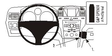 Kérjük, figyelmesen olvassa el az összes utasítást és tanulmányozza a képeket, mielőtt a ProClip-et rögzítené! 1. Nyissa ki a kesztyűtartót. Lazítsa meg a kesztyűtartó bal felső sarkában található csavart. Helyezze a csomagban található réstágítót a vékony felével a kesztyűtartó és a műszerfal közötti nyílásba, hogy kitágítsa azt. Távolítsa el a ragasztócsík borítását a ProClipről. 2. Nyomja a ProClip jobb oldalának levékonyított szélét a résbe a réstágító fölé. Csúsztassa a ProClip-et fölfelé a résben addig, ameddig csak lehet. Húzza ki a réstágítót. 3. Helyezze a réstágítót a vezérlőpult és a körülvevő keret közötti résbe. Nyomja a ProClip bal oldalának levékonyított szélét a résbe a réstágító fölé. Húzza ki a réstágítót. Nyomja előre a ProClip bal oldalát. hogy a tapadó rész meg tudjon ragadni. Húzza meg a csavart. 4. A ProClip a helyére került. |