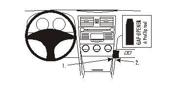 Kérjük, figyelmesen olvassa el az összes utasítást és tanulmányozza a képeket, mielőtt a ProClip-et rögzítené! 1. Helyezze a csomagban található réstágítót a vékony felével a középső vezérlő széle és a középső vezérlő oldalfala közötti résbe, hogy kitágítsa azt. Távolítsa el a ragasztócsík borítását a ProClipről. 2. Helyezze a ProClip bal oldalának levékonyított szélét a konzol szélébe. 3. Nyomja erősen előre a ProClip jobb oldalát, hogy annak levékonyított széle a résbe menjen a réstágító fölé. Addig nyomja, amíg nem látja, hallja/érzi, hogy az a helyére kattan. Húzza ki a réstágítót. 4. A ProClip a helyén van |