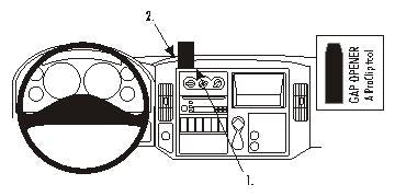 Kérjük, figyelmesen olvassa el az összes utasítást és tanulmányozza a képeket, mielőtt a ProClip-et rögzítené! 1. Helyezze a csomagban található réstágítót a vékony felével a műszerfalon lévő résbe, hogy kitágítsa azt. Távolítsa el a ragasztócsík borítását a ProClipről. 2. Nyomja a ProClip alsó felének levékonyított szélét a műszerfal kiálló része és a középkonzol panel kerete közötti résbe. 3. Nyomja erősen előre a ProClip középső/felső részét, hogy annak levékonyított széle a résbe menjen a réstágító mellé. Addig nyomja, amíg nem látja, hallja/érzi, hogy a helyére kattan. 4. A ProClip a helyére került. |
