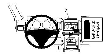 Mielőtt elkezdené a telepítést, kérjük, tekintse meg a képeket és figyelmesen olvassa el a használati útmutatót! Figyelem: a ProClip a bal oldali légbefúvó felé is felszerelhető. 1. A mellékelt réstágító segítségével tágítsa ki a rést a légbefúvó és a műszerfal között. Távolítsa el az öntapadó matricákat a ProClipről. 2. A ProClip alsó részét akassza be a légbefúvó mögé. 3. A ProClip felső részét óvatosan nyomja tovább, amíg a hátsó rész be nem akad a réstágító által kitágított rés mellé. Nyomja addig, amíg nem hallja/érzi, hogy a helyére került. Húzza ki a réstágítót. 4. A ProClip a helyére került. |
