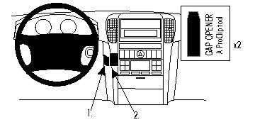 Mielőtt elkezdené a telepítést, kérjük, tekintse meg a képeket és figyelmesen olvassa el a használati útmutatót! 1.A mellékelt alkoholos kendő segítségével tisztítsa meg azt a területet, ahová a ProClip kerülni fog. Nyomja a mellékelt réstágító vékonyabbik felét a műszerfalon található résbe, így kiszélesíti azt. Távolítsa el az öntapadó matricákat a ProClipről. 2. Nyomja a ProClip bal felét a résbe, a réstágító fölé. Húzza ki a réstágítót. 3. Nyomja a réstágítókat a kezelő panel és az azt körülvevő panel kerete közé, az alá, ahová a ProClip kerülni fog. Nyomja a ProClip jobb oldalát a résbe, a réstágítók közé. Távolítsa el a réstágítókat. 4. A ProClip a helyére került. |