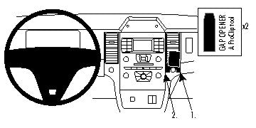 Mielőtt a ProClipet rögzítené, kérjük, tekintse meg a képeket és figyelmesen olvassa el a használati útmutatót! 1. Tisztítsa meg azt a felületet, ahová kerülni fog a ProClip a mellékelt alkoholos párnával. Nyomja a mellékelt réstágítók vékonyabbik végét a műszerfalon található résbe, a képen látható módon. Távolítsa el a ragasztócsík borítását a ProClipről. 2. Nyomja a ProClip jobb élét a résbe, a réstágító fölé. 3. Nyomja előre a ProClip bal oldalát, hogy az éle a résbe akadjon, a réstágító fölé. Húzza ki a réstágítókat. 4. A ProClip a helyére került. |