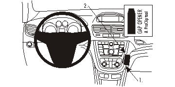 Mielőtt elkezdené a telepítést, kérjük, tekintse meg a képeket és figyelmesen olvassa el a használati útmutatót! 1. Nyomja a mellékelt réstágító vékonyabbik felét a középső konzol kerete és a műszerfal közti résbe, így kiszélesíti azt. A mellékelt alkoholos kendő segítségével tisztítsa meg azt a területet, ahová a ProClip kerülni fog. Távolítsa el az öntapadó matricát a ProClipről. Nyomja a ProClip jobb oldalát a résbe, a réstágító alá. 2. Nyomja előre a ProClipet ütközésig. Húzza ki a réstágítót. 3. Nyomja a réstágítót a kezelő panelt körülvevő keret és a középső konzol közti résbe. Akassza be a bal oldali meghajlított élt a résbe, a réstágító alá. Húzza ki a réstágítót. 4. A ProClip a helyére került. |