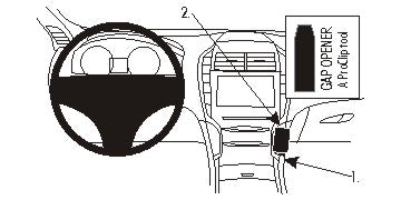Mielőtt elkezdené a telepítést, kérjük, tekintse meg a képeket és figyelmesen olvassa el a használati útmutatót! 1. A mellékelt alkoholos kendő segítségével tisztítsa meg a ProClipet, ahová az kerülni fog. Távolítsa el az öntapadós matricát a ProClipről. Nyomja a mellékelt réstágító vékonyabbik felét a jobb oldali konzol két panele közti résbe, így kiszélesíti azt. Nyomja a ProClip jobb oldalán található elgörbített élt a résbe, a réstágító mellé. Húzza ki a réstágítót. 2. Nyomja a réstágító vékonyabbik felét a felső konzol széle és a középső konzol panele közti résbe. Nyomja meg a ProClip jobb oldalát úgy, hogy az meghajoljon a középső konzol rése felé és akadjon be a résbe, a réstágító alá. 3. Nyomja határozottan lefelé a ProClip bal oldalát és győződjön meg arról, hogy a meghajlított él minden irányból illeszkedik a résbe, Húzza ki a réstágítót. 4. A ProClip a helyére került. |