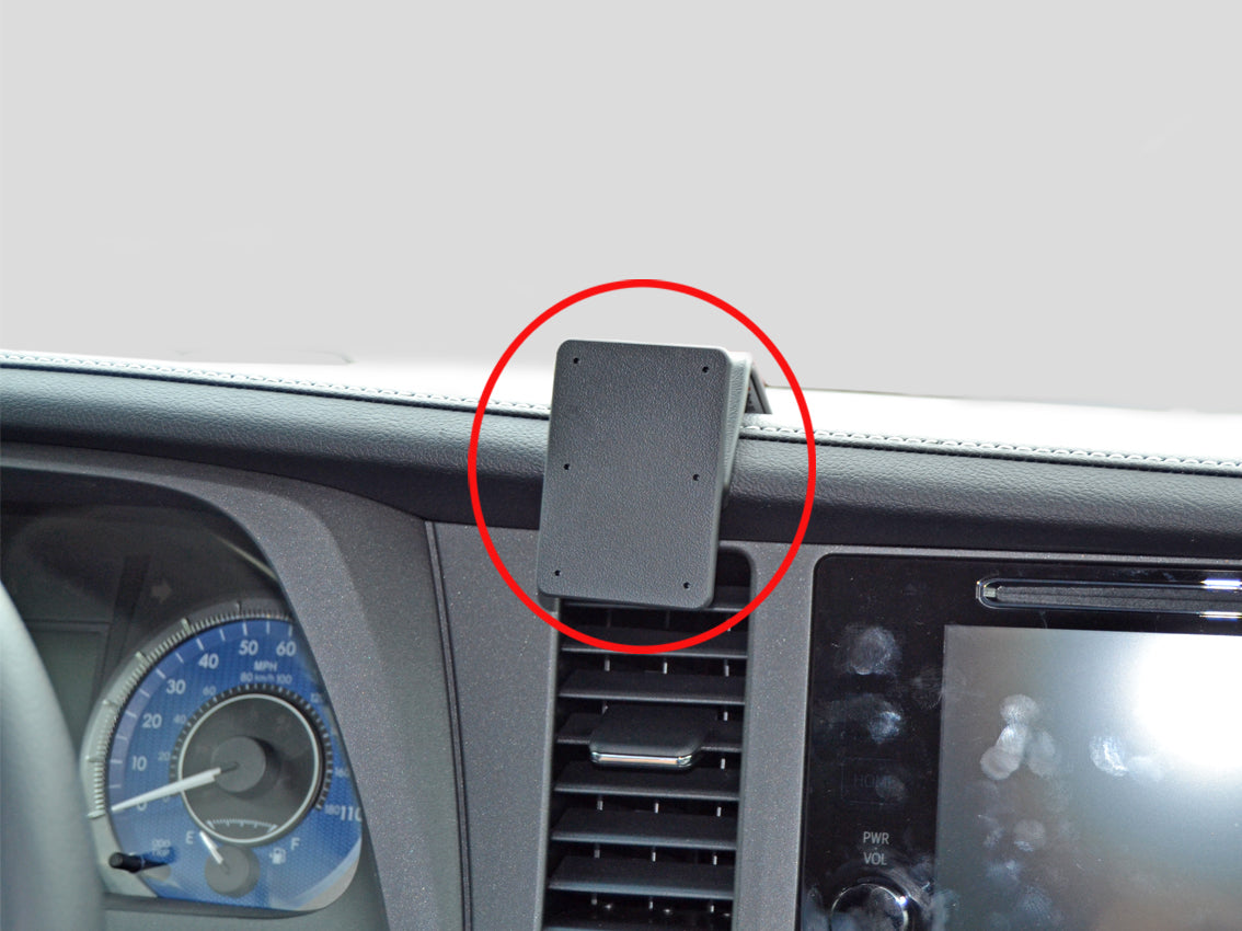 Mielőtt a ProClip-et rögzítené, kérjük, figyelmesen olvassa el a használati útmutatót! 1. Tisztítsa meg azt a felületet, ahová kerülni fog a ProClip a mellékelt alkoholos párnával. Távolítsa el a ragasztócsík borítását a ProClip-ről. Igazítsa a ProClipet a bal szellőzőnyílás fölé. Nyomja a ProClip felső részét a résbe, a két műszerfal rész találkozása közé. Nyomja a felső részt lefelé, hogy megbizonyosodjon róla, hogy az éle teljesen bement a résbe és a műszerfal előlapja alatt van. 2. Húzza maga felé a ProClip alsó részét, hogy az alsó éle a műszerfal éle köré akadjon. 3. Nyomja lefelé/előre a ProClipet, hogy megbizonyosodjon róla, hogy a ragasztócsík megfelelően tapad. Figyelmeztetés: Ha a ProClip nincs megfelelően igazítva a bal szellőzőnyílás fölé, lehetséges, hogy nem marad biztonságosan a helyén. 4. A ProClip a helyére került. |