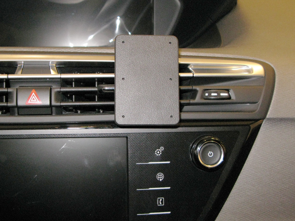 Mielőtt a ProClip-et rögzítené, kérjük, figyelmesen olvassa el a használati útmutatót! 1. Nyomja a mellékelt réstágító vékonyabbik végét a résbe, a középső konzol és a műszerfal közé, hogy tágítsa a rést. Tisztítsa meg azt a felületet, ahová kerülni fog a ProClip a mellékelt alkoholos párnával. Nyomja/akassza a ProClip alsó élét a résbe, a szellőzőnyílást körülvevő keret mögé. 2. Akassza a ProClip felső élét a résbe, a réstágító mellé. 3. Nyomja lefelé a ProClip tetejét, hogy az éle teljesen bemenjen a résbe és a ragasztócsík illeszkedjen. Húzza ki a réstágítót. 4. A ProClip a helyére került. |