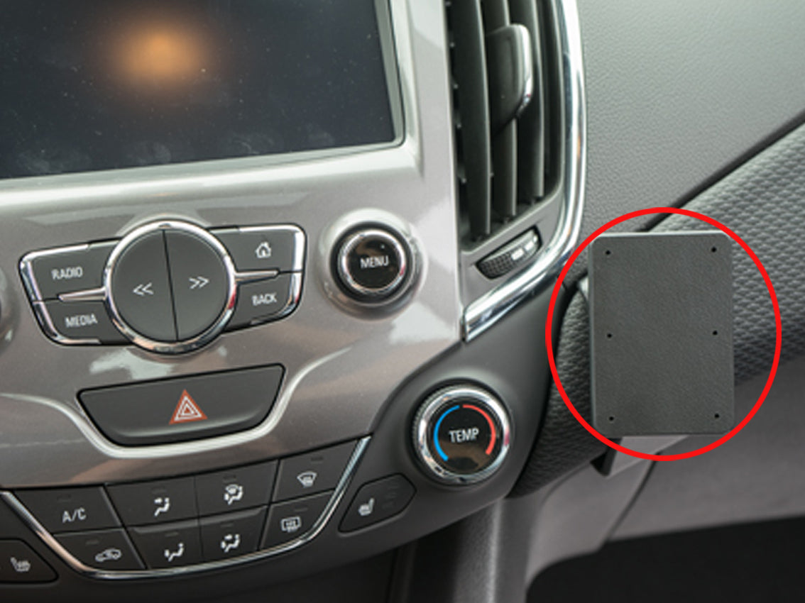 Please read all of the instructions and look at the pictures before installing the ProClip. 1. Insert the lower angled edge of the ProClip into the seam between the dash panel to the left of the glove compartment door and the curved panel above. 2. Push the upper part of the ProClip upward. Make sure the lower edge stays in the seam. 3. Hook the upper angled edge of the ProClip into the seam, between the curved dash panel above the glove compartment door and the padded upper part of the dash. 4. The ProClip is in place.