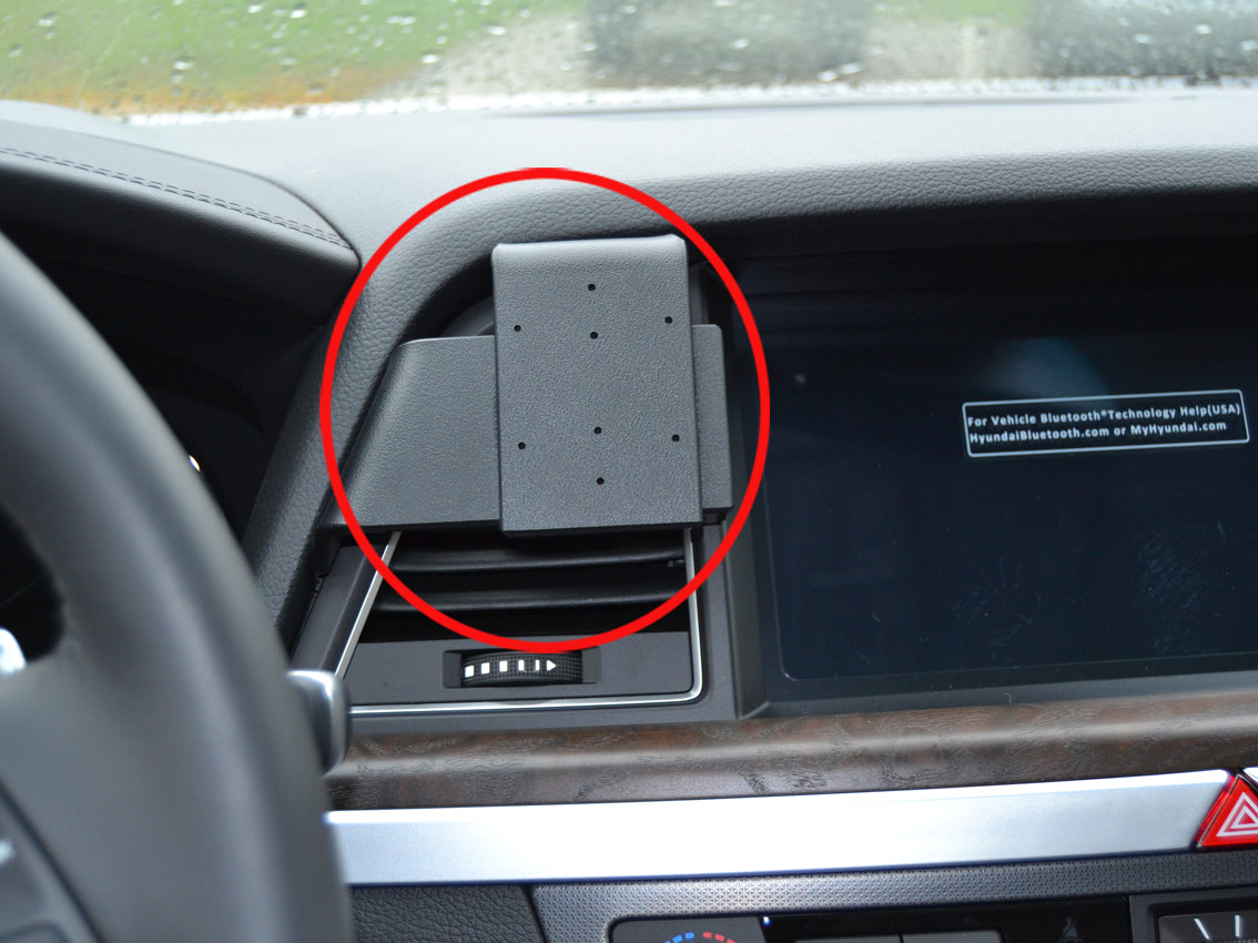 Mielőtt a ProClip-et rögzítené, kérjük, figyelmesen olvassa el a használati útmutatót! 1. Tisztítsa meg azt a felületet, ahová kerülni fog a ProClip a mellékelt alkoholos párnával. Távolítsa el a ragasztócsík borítását a ProClip-ről. Nyomja teljesen a ProClip vékony, felső részét a felső szellőzőnyílás kerete és a keret feletti párnázott műszerfal között található szegélybe. 2. Nyomja teljesen a ProClip vékony, bal élét a bal szellőzőnyílás kerete és a kerettől balra található párnázott műszerfal közé. 3. Nyomja meg határozottan a ProClip jobb oldalát, hogy a ragasztócsík a jobb oldali szellőzőnyílás keretéhez tapadjon. 4. A ProClip a helyére került. |