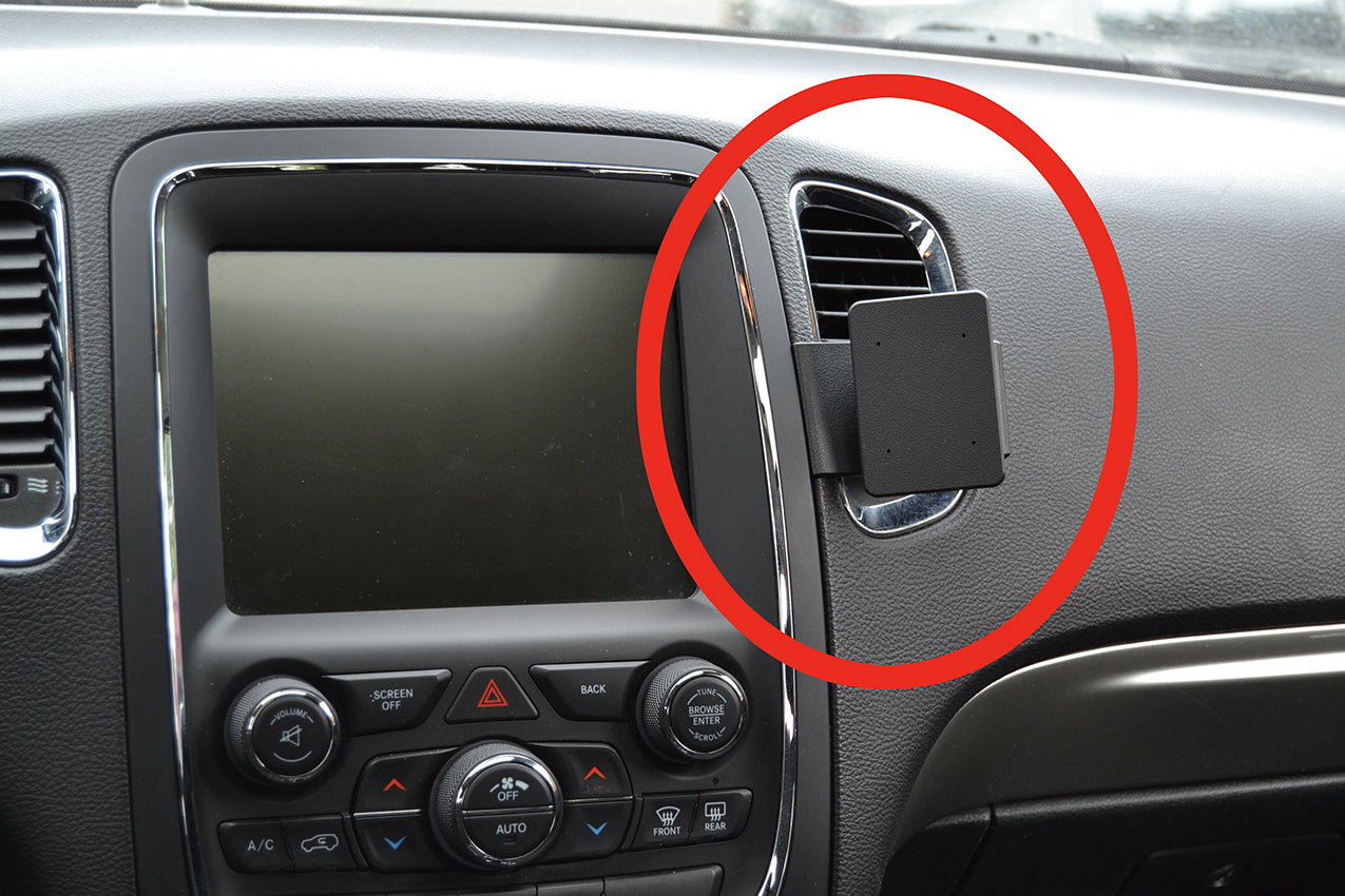 Mielőtt a ProClipet rögzítené, kérjük, tekintse meg a képeket és figyelmesen olvassa el a használati útmutatót! 1. Tisztítsa meg azt a felületet, ahová kerülni fog a ProClip a mellékelt alkoholos párnával. Nyomja a mellékelt réstágító vékonyabbik végét a szellőzőnyílást körülvevő keret és a műszerfal közötti résbe. Távolítsa el a ragasztócsík borítását a ProClipről. Nyomja a ProClip bal élét a középkonzol kerete és a műszerfal párnázott része közötti résbe. 2. Nyomja a ProClipet jobbra, hogy a bal éle a középkonzol kerete mögé akadjon. 3. Nyomja előre a ProClip jobb oldalát, hogy az éle teljesen bemenjen a résbe, a réstágító alá. Addig nyomja, amíg nem látja/hallja, hogy a helyére pattant. Húzza ki a réstágítót. 4. A ProClip a helyére került. |