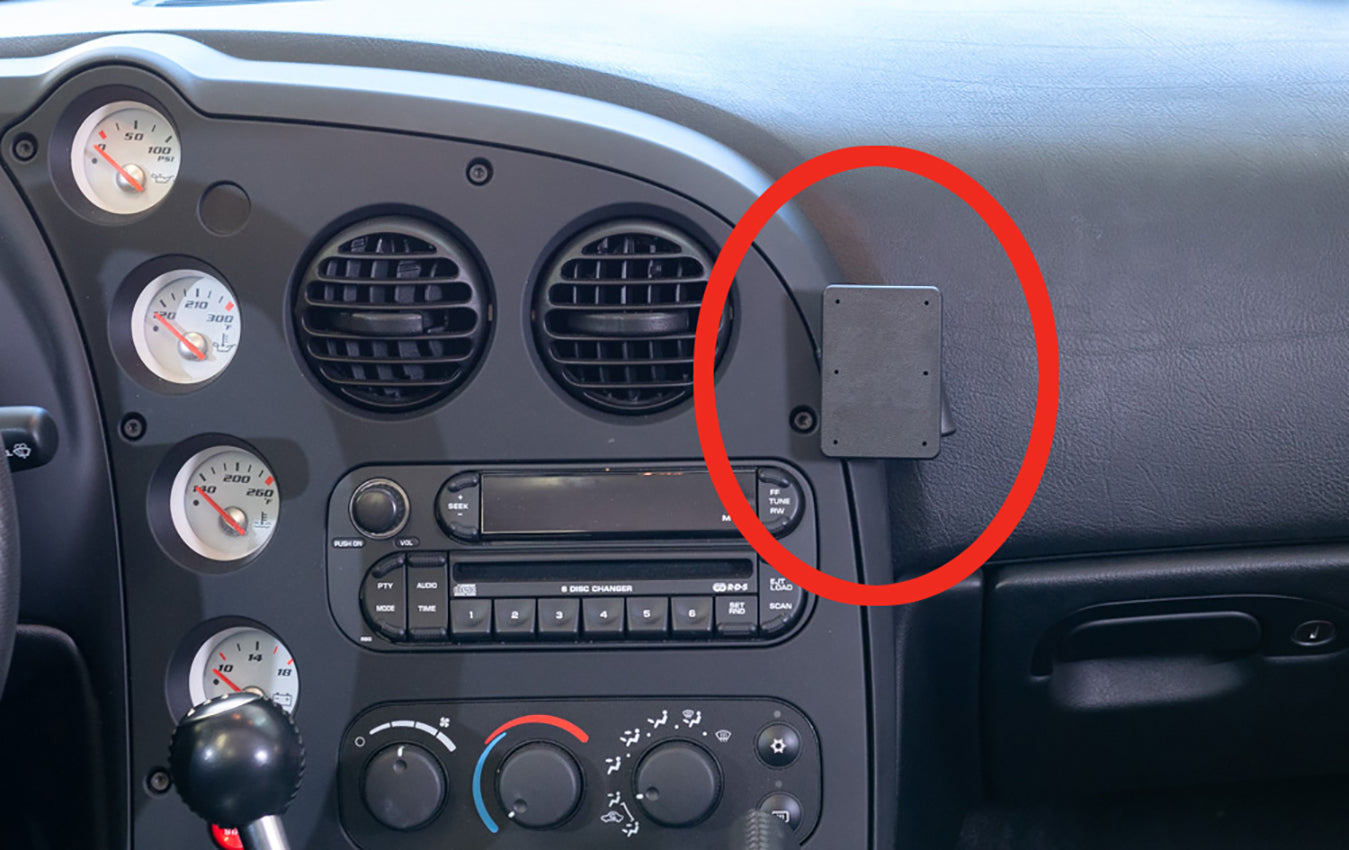 2. Press the ProClip to the left. Hook the left edge of the ProClip over the console frame and into the gap between the console frame and panel surrounding the vents.