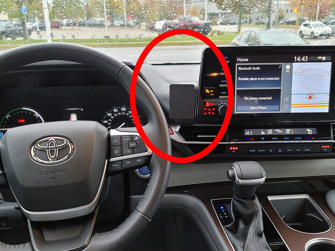 2. Insert the gap opener into the gap on top of the dashboard, between the soft top layer of the dashboard and the hard layer just underneath. Press forward on the mounting plate so the upper edge of the ProClip hooks into the gap next to the gap opener.