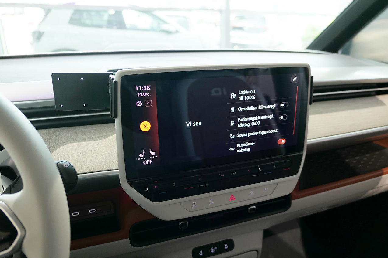 2. Helyezze a tartót a képernyő fölé úgy, hogy az előlap a vezető oldalán legyen. Enyhén nyomja ki a tartó oldalait.