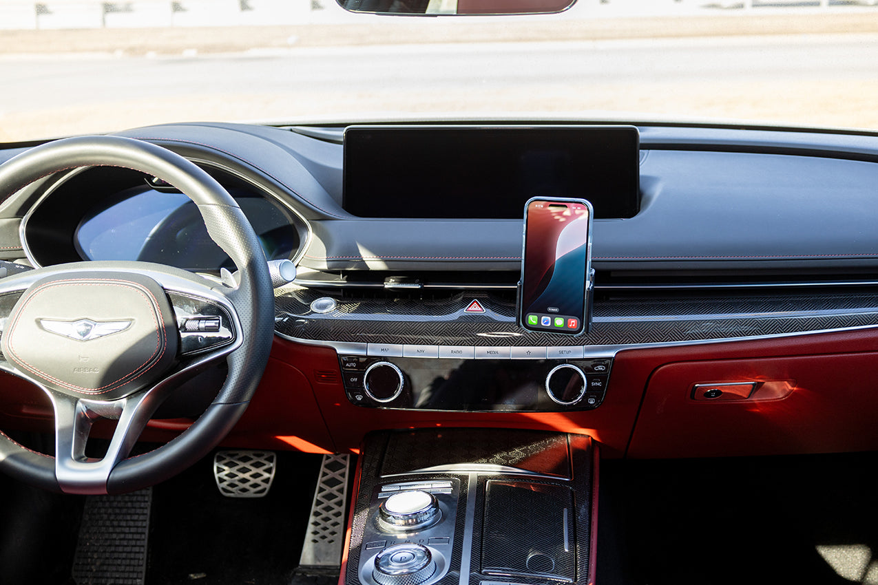 2. Igazítsa középre a tartót a jobb légbeömlő fölött. Helyezze a tartó felső élét a résbe a résnyitó mellett.