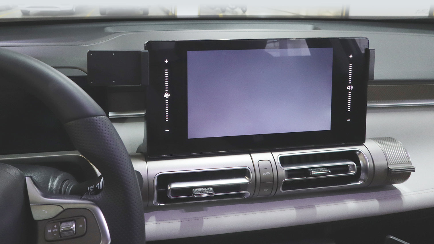 1. Használja a mellékelt alkoholos törlőkendőt a terület megtisztításához, ahol a tartó telepítve lesz. Távolítsa el a ragasztószalag fedelét. Tartsa a tartót a képernyő felett úgy, hogy az előlap a képernyő vezető oldali részére kerüljön.