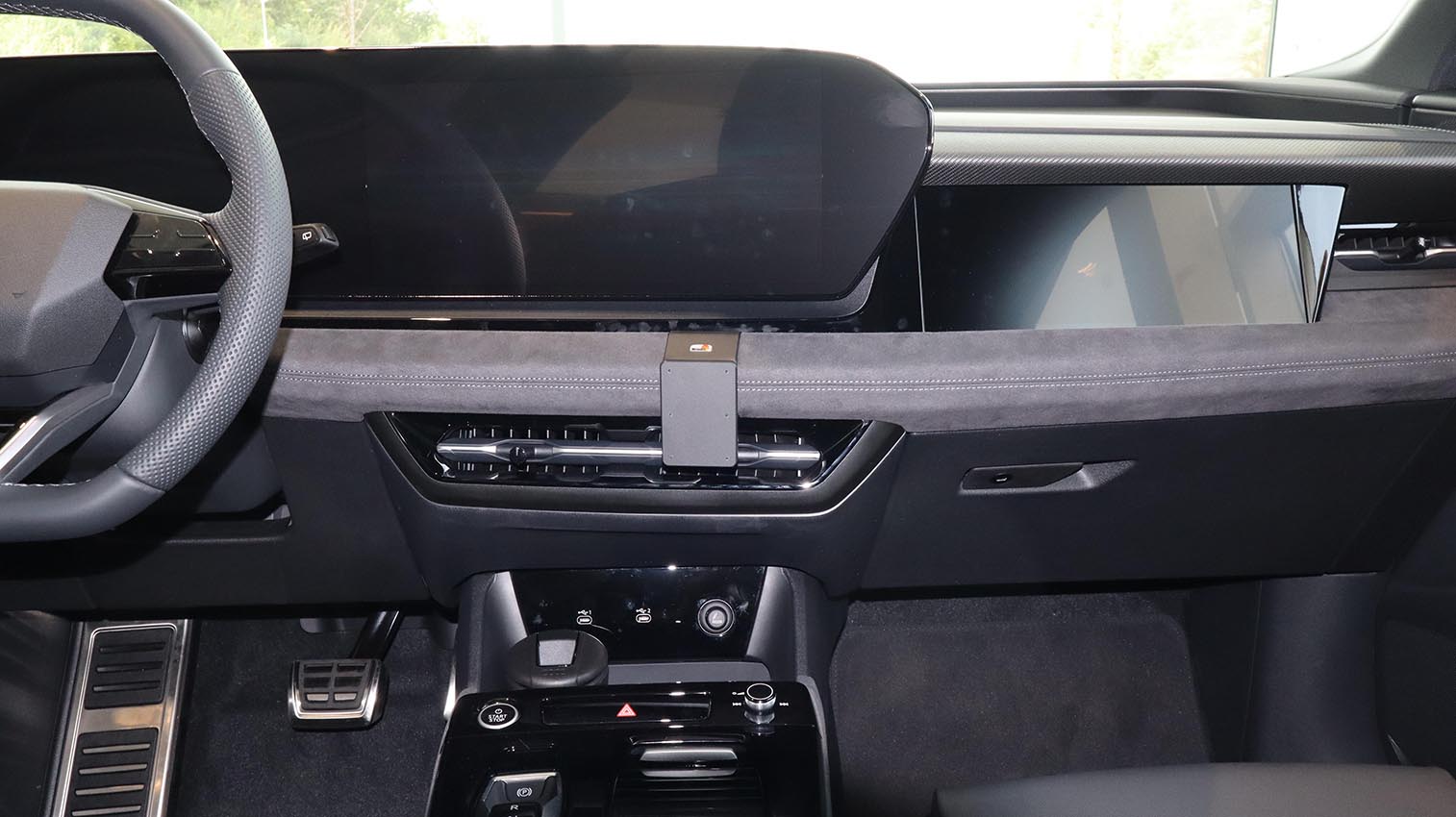 4. A ProClip tartó a helyén van. A tartó tetszőlegesen elhelyezhető a középső szellőzőnyílások szélességében, feltéve, hogy a felszerelt eszköz/berendezés nem akadályozza a láthatóságot és a hozzáférést. |