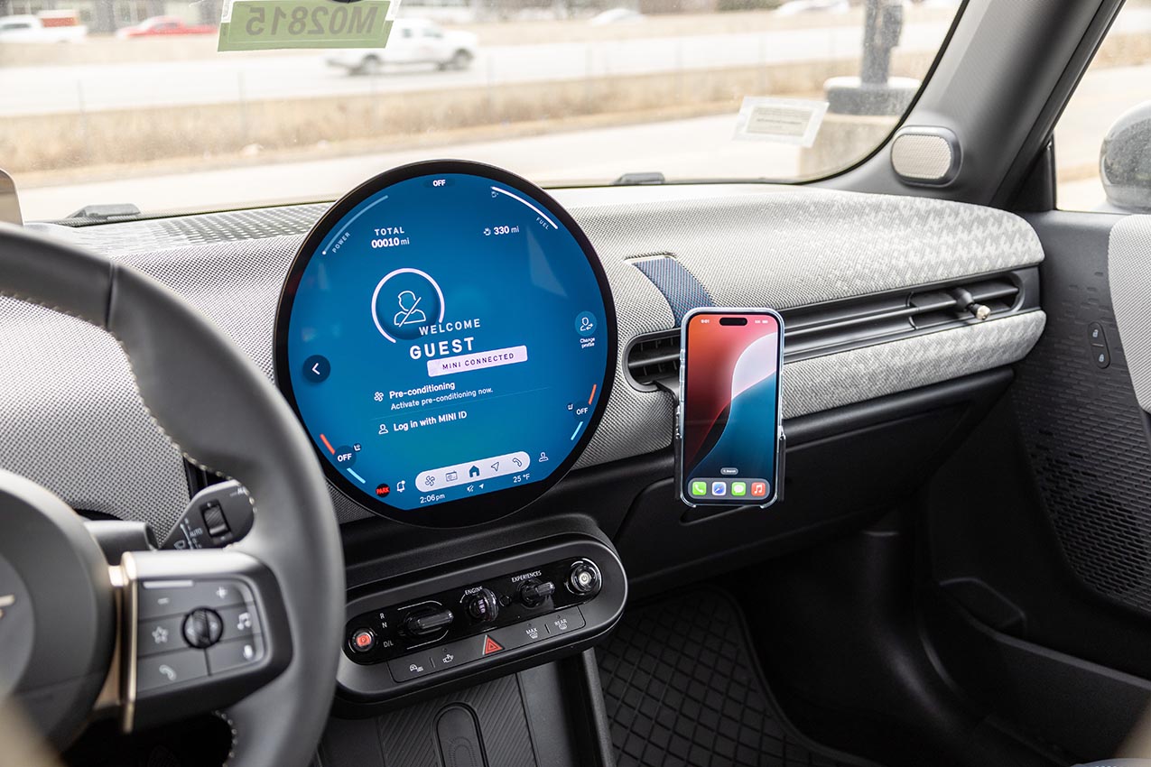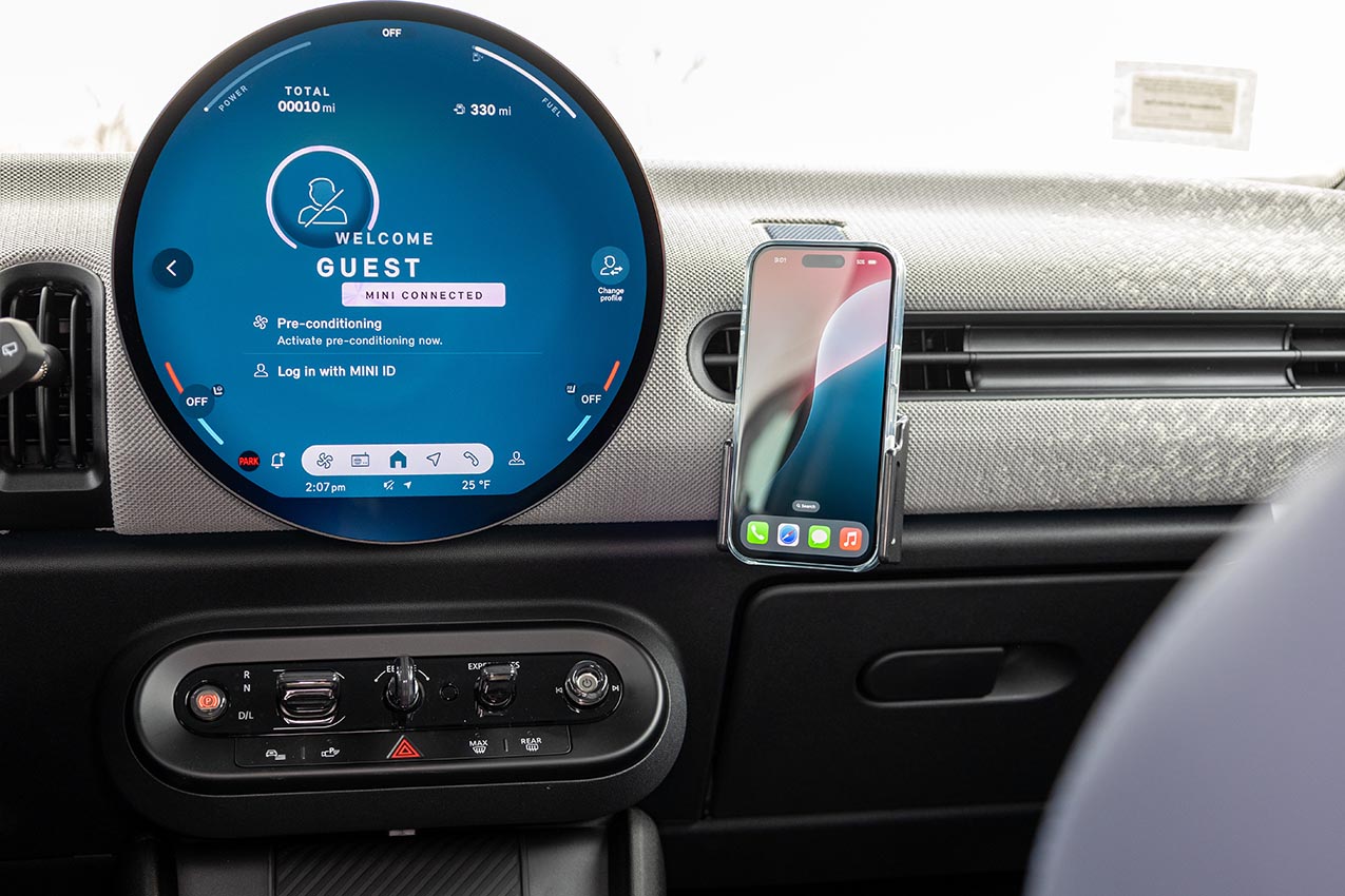 1. Használja a mellékelt alkoholos törlőkendőt a terület megtisztításához, ahová a tartót felszereli. Húzza le a ragasztószalag fedőrétegét. Akassza a tartó felső élét a jobb oldali középső légbefúvó keretére.