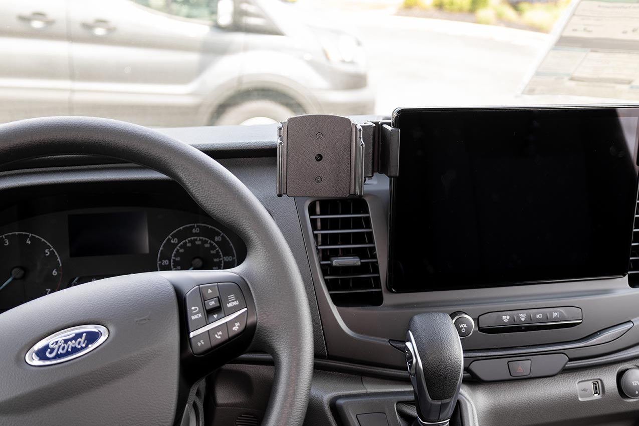2. Hold the mount over the screen so the mounting plate is on the driver's side of the screen. Slowly and firmly, press down on both sides of the mount to slide/hook it onto the screen.