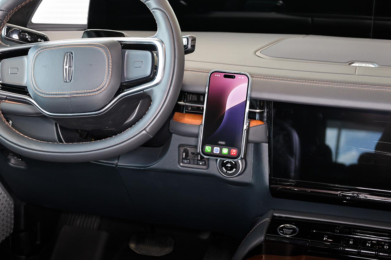 3. Face plate part: Hook the upper lip of the mount inside the bottom of the vent. Squeeze the two parts together to align the screw holes. Secure the mount together using the included screws.